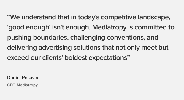 From winning creative awards to building proprietary AI tools, Mediatropy has shown that innovation and integration go hand in hand. We’re more than a service provider; we’re a partner that challenges assumptions, blends media with technology, and crafts stories that resonate across markets.